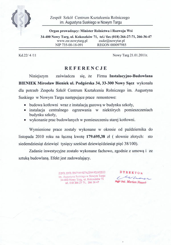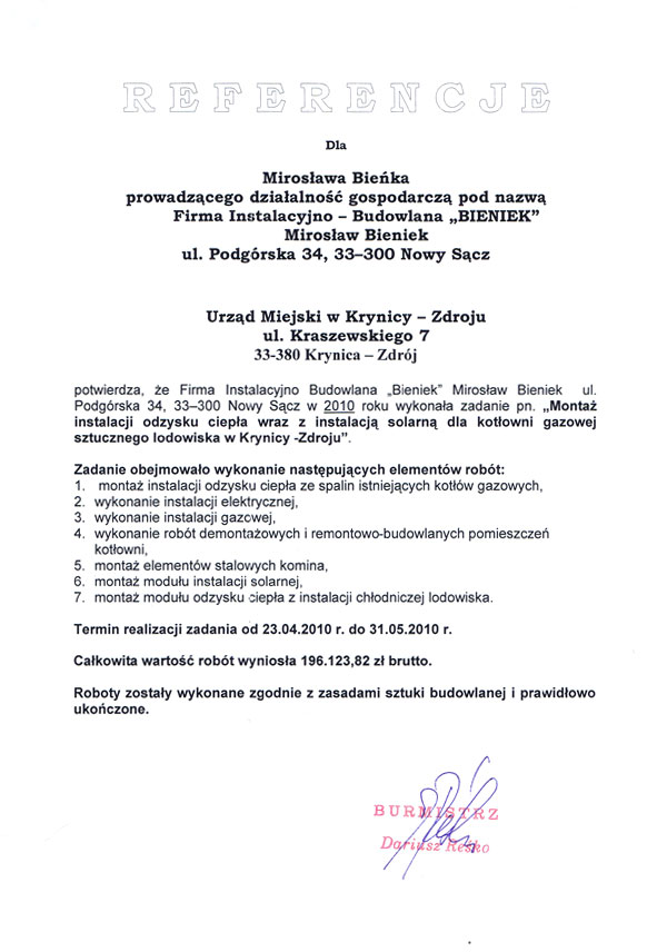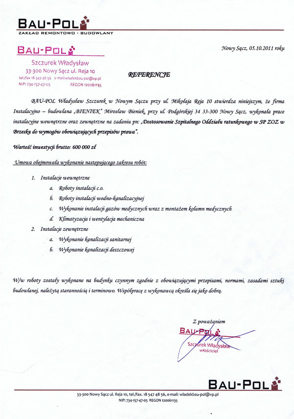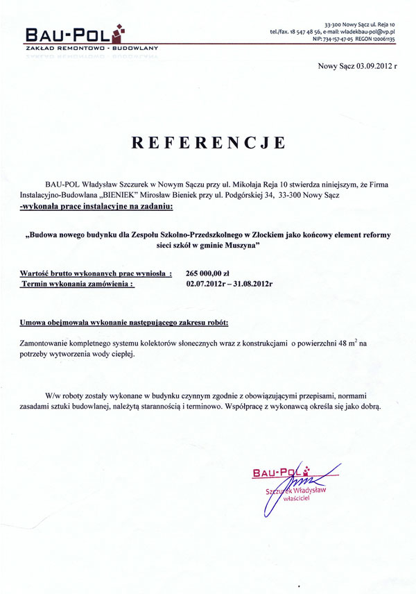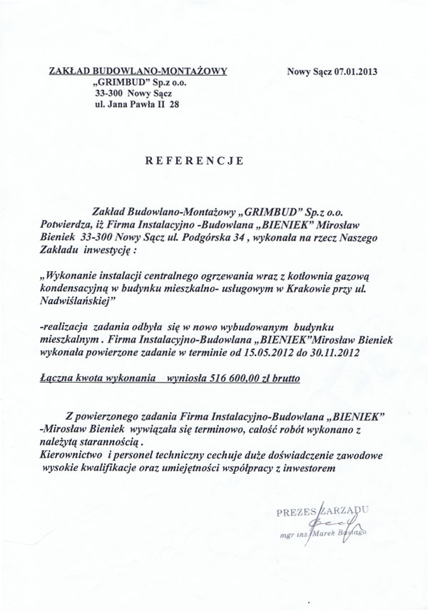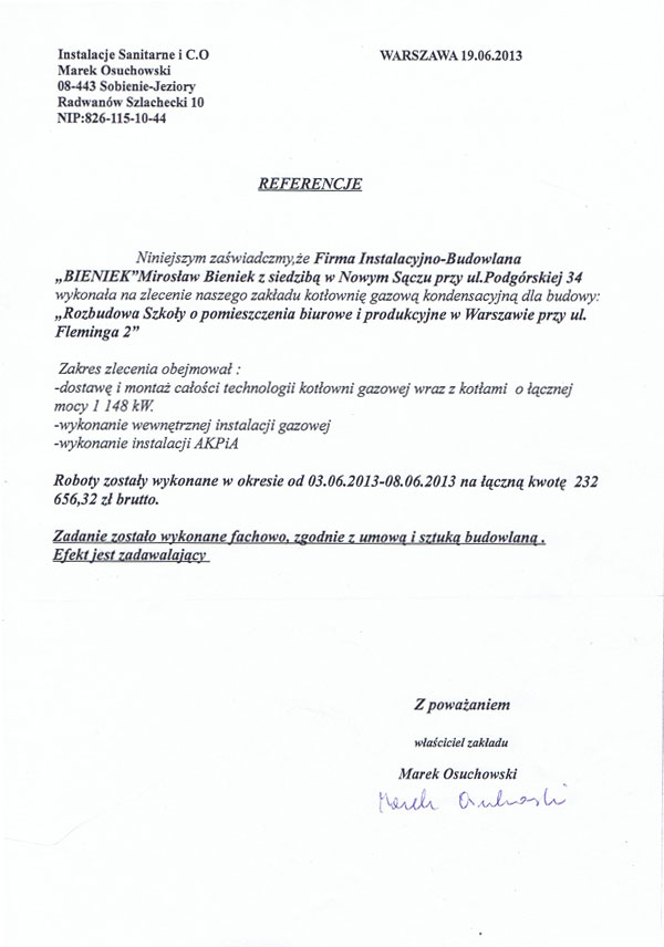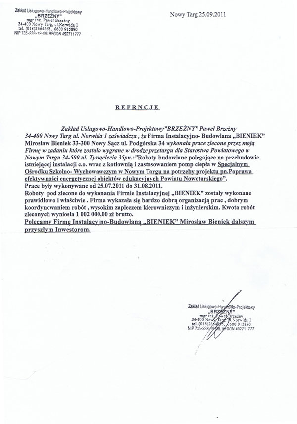 Zadowolenie naszych klientów jest dla nas bardzo ważne dlatego dbamy o jakość i sprawną realizację wykonywanych usług. O jakości naszych usług świadczą otrzymane referencje. Oto kilkanaście z wielu, jakie otrzymaliśmy na przestrzeni lat, od naszych zadowolonych klientów.